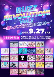 スケジュール トップスケジュール 新宿ReNY 2025.09.27.sat 新宿ReNY 『 BUZZ REVOLUTION!Vol.2〜推しメンをバズらせたい!〜 』 🗓9/27(土) 📍新宿ReNY ⏱OPEN 11:30/START11:50 🎟 前方優先5,000円/一般2,500円 各D代別 当日500円UP 🉐指名入特 写メトークor30秒動画 チケットはこちらから🔗 t-dv.com/buzz0927 販売開始 2025/9/12(金) 20:00 📸静止画の撮影可能👌🏻 ⚠️特典会中は感染対策のため、マスクの着用にご協力いただきますようお願い申し上げます😷