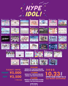スケジュール トップスケジュール duo MUSIC EXCHANGE 2025.10.23.thu duo MUSIC EXCHANGE 『HYPE IDOL !』 🗓10/23(木) 📍duo MUSIC EXCHANGE ⏱OPEN 10:00/START 10:15 🎤ライブ 19:50-20:10 ✍🏻特典会 20:15-21:15 🉐指名入特 写メトークor30秒動画 🎟前方 ¥5,000/ 一般 ¥2,500 (各+1D) チケットはこちらから🔗 t-dv.com/hype_1023 📸静止画の撮影可能👌🏻 ⚠️特典会中は感染対策のため、マスクの着用にご協力いただきますようお願い申し上げます😷