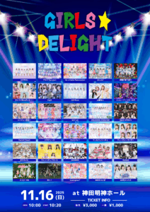 スケジュール トップスケジュール 神田明神ホール 2025.11.16.sun 神田明神ホール 『GIRLS☆DELIGHT#368』 🗓11/16(日) 📍神田明神ホール ⏱ OP 10:00 / ST 10:20 🉐指名入特 写メトークor 30秒動画 🎟前方3000円 通常1000円 当日各+1000円(+1D) チケットはこちらから🔗 t.livepocket.jp/e/girlsdelight… ※チケ発10月18日(土)23:00 📸静止画の撮影可能👌🏻 ⚠️特典会中は感染対策のため、マスクの着用にご協力いただきますようお願い申し上げます😷
